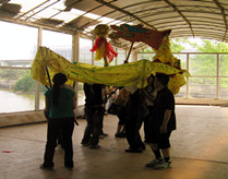 2、各组进行扎龙(在专业教练引导下)